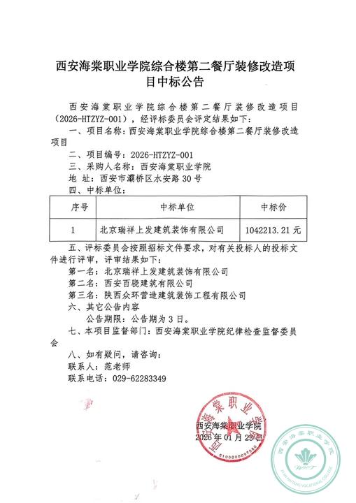 SUNBET申搏综合楼第二餐厅装修改造项目中标公告