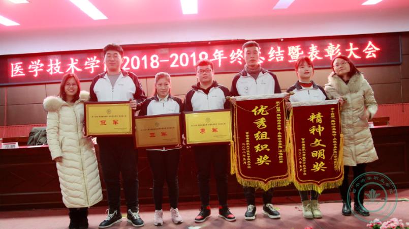 追忆一年的时光,不觉年华似水。一年时光转瞬即逝,不知不觉间,一场迟来的飞雪带走了繁忙。莫问收获,但问耕耘,2018年12月29日,医学技术学院2018―2019学年年终总结暨表彰大会在学院学术报告厅顺利举行,参加大会的有医学技术学院朱介法院长,朱雄波副院长,学生科左海里科长,教学科王雅台科长,实训科惠晓明科长,团总支范鹏书记,以及医学技术学院全体教职员工和各教学班学生代表。会议由团总支书记范鹏主持。