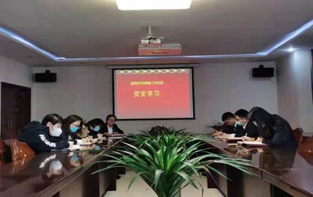 2021年4月9日下午,医技院教工党支部在行政楼2号会议室开展学党史主题教育,学习由朱介法书记主持,全体教工党员参加。