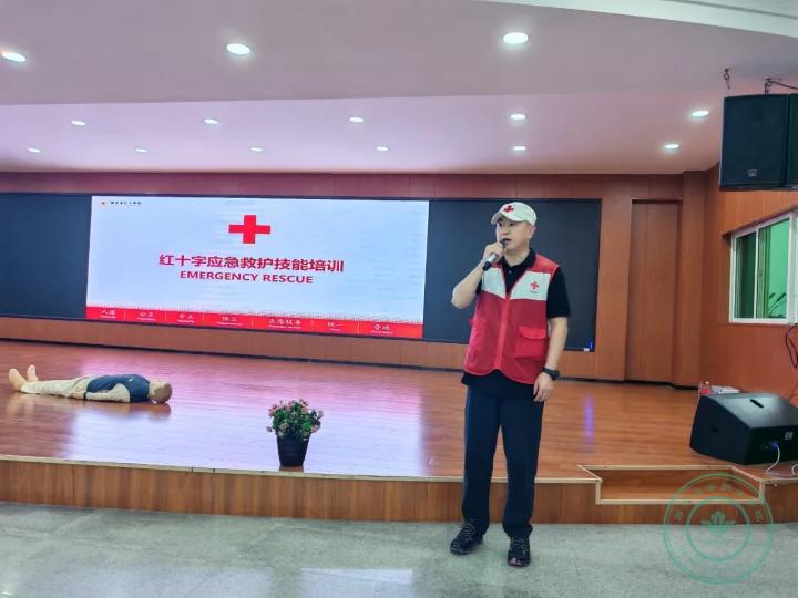 培训紧扣“救在身边,校园守护” 主题,对标活动核心科目,围绕 “成人心肺复苏(CPR+AED)”“创伤包扎”“骨折固定”“扭伤处理”“气道异物”“动物咬伤“模块展开。团队以深厚专业素养,将复杂急救知识拆解为易懂要点,兼顾理论讲解与实操示范,为师生清晰传递急救关键技能。