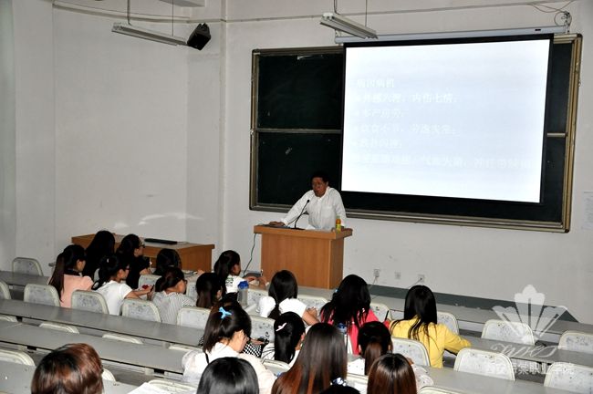 5月21日,海棠学院副院长、院学术委员会主任王景洪在2112多媒体教室为广大师生讲解了痤疮治疗与月经不调专题讲座。