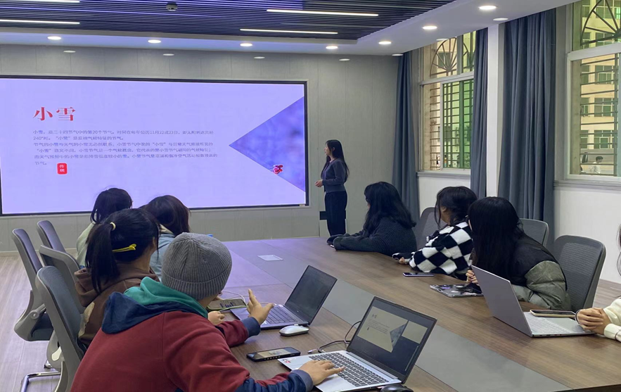 在小雪时节,南方某些地方还有农历十月吃糍粑的习俗。糍粑是用糯米蒸熟捣烂后所制成的一种食品,是中国南方一些地区流行的美食。谚语“小雪雪满天,来年必丰年”,同时百姓在小雪这一天也会休息,在这天杀鸡宰羊,犒赏一家人的辛苦,期盼来年获得好收成。在此活动中让海棠中医美容博物馆的全体师生更好的了解二十四节气的小雪,科普小雪的传统文化了解节气的相关习俗,相互交流互动便于更好的认识中国传统节气。