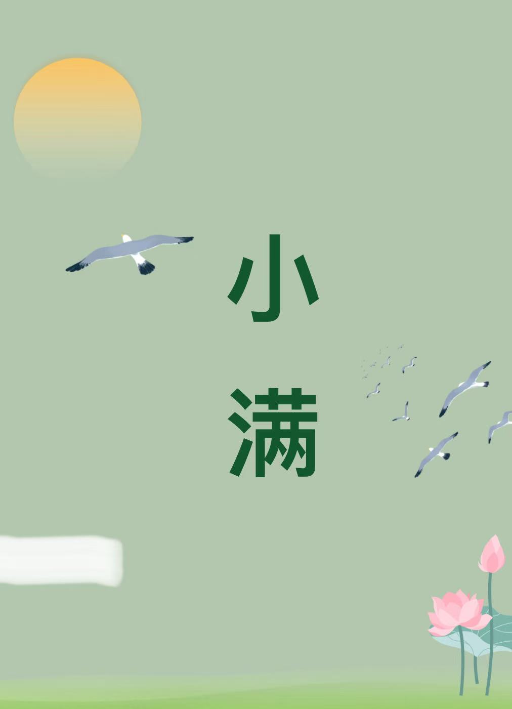 小满,二十四节气中的第八个节气,也是夏季的第二个节气。小满,斗指甲,太阳达黄经60°,于每年公历5月20—22日交节。小满之名,有两层含义。