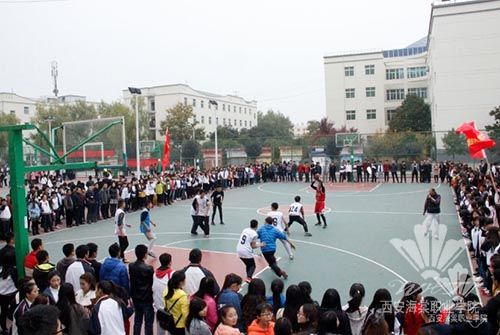 各支队伍在队长的带领下,有序进入篮球场。赛场上每一个参赛队伍都斗志昂扬,与对手展开了激烈的碰撞和角逐。每一位队员都仿佛化身运动健将,那精彩的三分球,精准的罚球,把比赛推向一个又一个高潮;快攻,妙传,更是令比赛精彩纷呈……场上比赛如火如荼,双方队员情绪高涨,场下观众也是激情四射、呐喊助威,他们手持彩花、彩旗等为各自队伍加油,喊得面色赤红、声音嘶哑,气氛十分活跃。