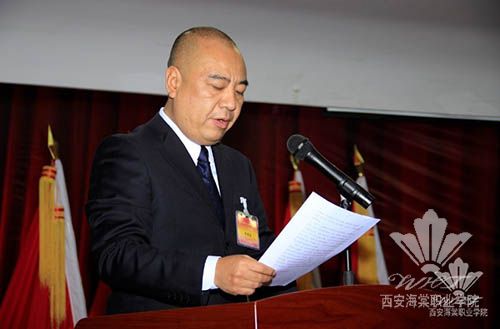 会议由党委副书记冯居秦同志主持。他首先介绍了出席会议的上级领导和来宾。他们分别是:省委高教工委常务副书记董小龙、组织部部长陈平社、组织部刘万斌同志。出席会议的还有海棠集团董事长王卓,学院党委书记张桂荣、党委副书记吕波及各位委员。大会应到党员代表70名,实到70名。