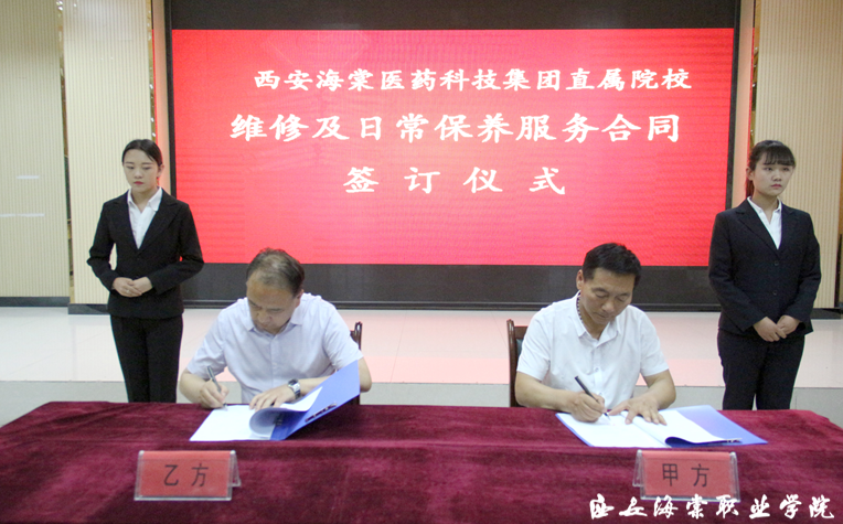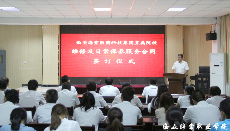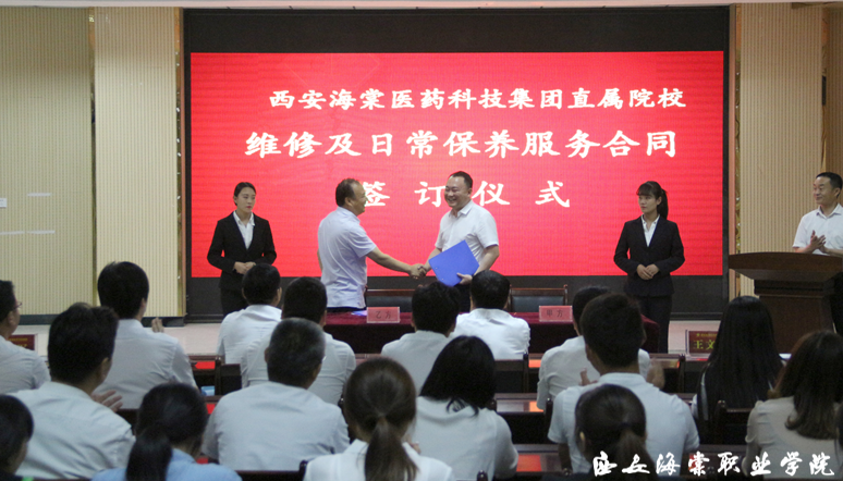 2018年5月30日下午,西安海棠医药科技集团两所直属院校与西安仁美建设工程有限公司在SUNBET申搏教师发展中心举行了“维修及日常保养服务合同”签订仪式,拉开了集团直属院校后勤维修工作社会化保障的序幕。