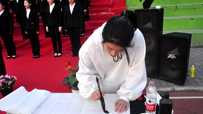 自选歌曲比赛环节,医学美容学院团总支演绎的歌曲《国家》感情丰沛,配以中国传统书法写就的国家二字,寓意深远。机关团工委、经济管理学院的《我相信》唱响青年学生未来的
