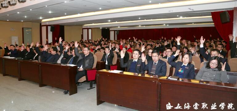 教职工代表大会上,党委副书记吕波宣布工会改选事项,财务处处长吴继东作年度财务预算执行报告,人事处处长于启波作年度人力资源规划执行报告,工会主席陈晓东作2017年度工会工作报告。