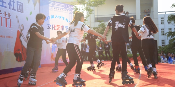 学生联合会带来的《Good Time>赢得了现场观众一阵又一阵的尖叫欢呼声。轮滑社用轮滑为我们舞动出美丽的步伐《爱的华尔兹》。青末几笔,撇捺之间,多少笔墨情,武术社与书法社为我们一起带来视觉上的盛宴。