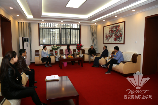 在贵宾接待室,许院长向来宾们介绍了创业学院的发展过程,详细汇报了目前创业孵化基地建设运营情况。他说,一直以来,海棠学院高度重视学生的就业创业工作,为贯彻国家“双创”及学院“创业带动就业”的号召,将学院特色专业与市场需求相结合,投入专项资金打造现代化大学生创业孵化基地。