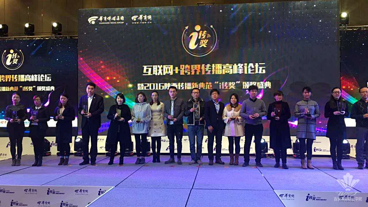 12月21日下午,由华商传媒集团主办的2016陕西传播新典范“i传奖”颁奖典礼在临潼爱琴海酒店举行。我院凭借在品牌传播工作中的突出表现荣获“2016陕西品牌传播新典范”大奖。副院长谢元龙受邀代表学院参加了此次颁奖活动。
