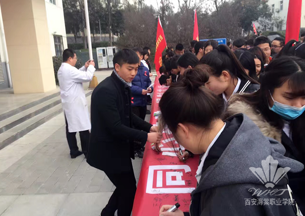 活动开始,解书记宣读《关于开展2016年世界艾滋病日宣传活动的通知》。团学干部代表机关团工委书记王新东向全院师生发出倡议,希望大家从自身做起,做到洁身自爱,正确对待艾滋病,预防艾滋病。随后,石书记作发言,告诉师生们艾滋病在世界上及我国的蔓延趋势,指出广大青少年既是艾滋病预防宣传工作的重点对象,也是宣传艾滋病预防知识的生力军。希望广大青少年要积极参与防治知识的宣传教育活动,不断增强自我保护意识和能力。最后,每位学生在胸前佩戴红丝带,并且在预防艾滋病横幅上签上自己名字。