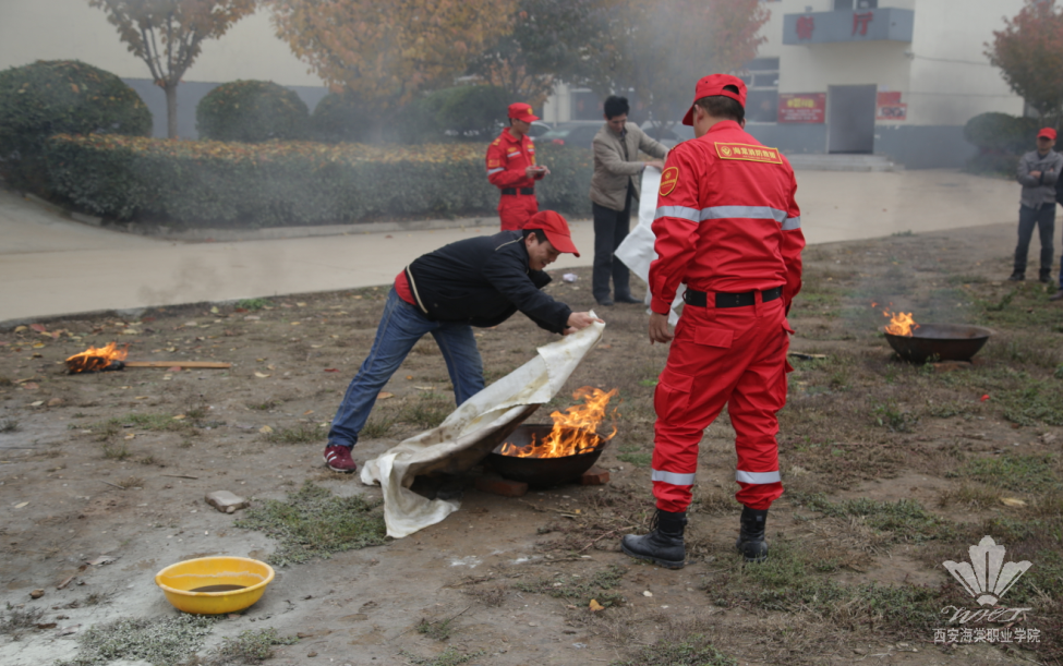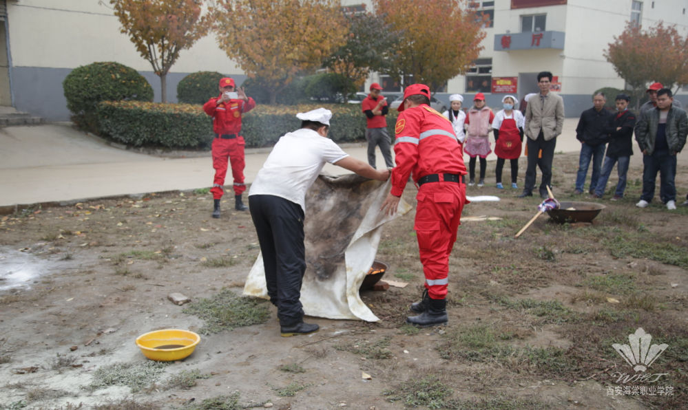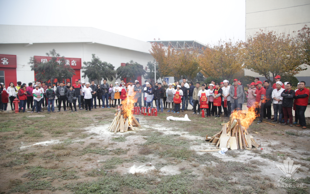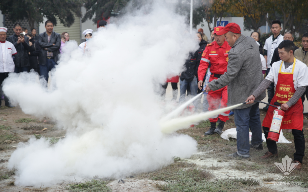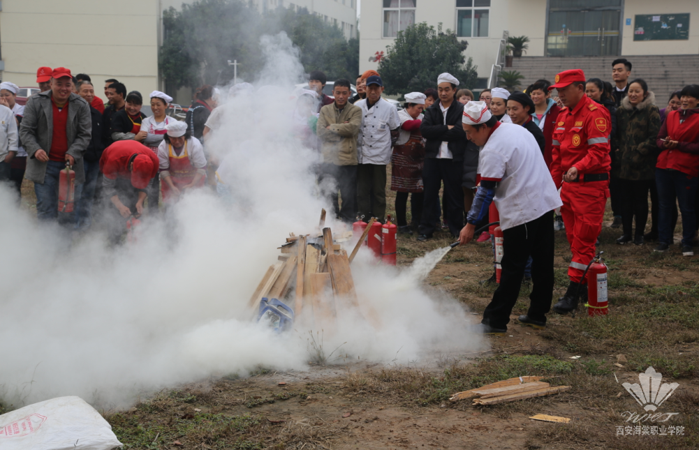 随后,为了使后勤服务人员更能熟悉灭火器、灭火毯使用方法,保卫处人员在现场演示了突发大火、油盆火灾的扑救方法,让员工亲自进行了一次真实的现场灭火演练。