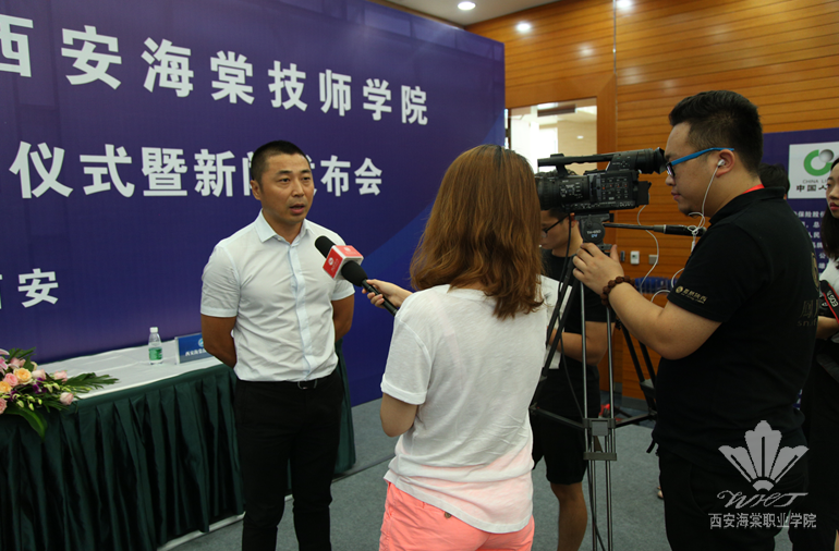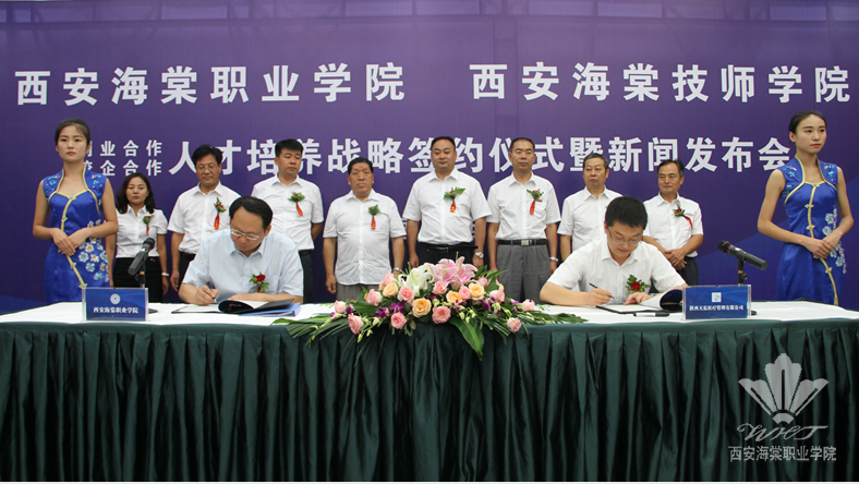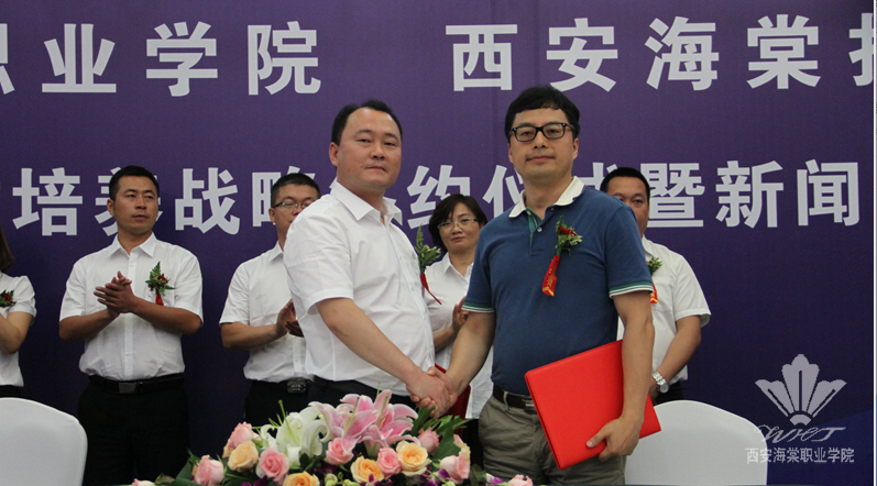西安海棠技师学院院长王文强代表技师学院分别与中国人保寿险西安市分公司、上海永琪美容美发经营管理有限公司、陕西唐都义齿制作有限公司、西安雁塔天佑儿童医院、浙江缔美诗品牌管理有限公司、陕西华远大药房有限公司、西安光明眼镜有限公司等7家企业的相关负责人签订了校企合作协议,即与这7家企业合力打造“订单班”。来自陕西电视台、陕西日报、华商报、腾讯大秦网等20余家媒体记者见证了海棠创新创业教育成绩的辉煌时刻。