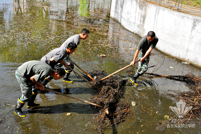 那一夏,暴雨侵袭了白鹿原,雨水灌进校门,汇集在北门口无法排出,积水很快漫过了脚踝。他们第一时间集结起来,挽起裤腿,与恶劣的天气展开搏斗。大雨砸向他们的脊背,横扫他们的脸庞,他们却像扎根在水中,在最短的时间里恢复校园秩序,让师生们出入畅通无阻。