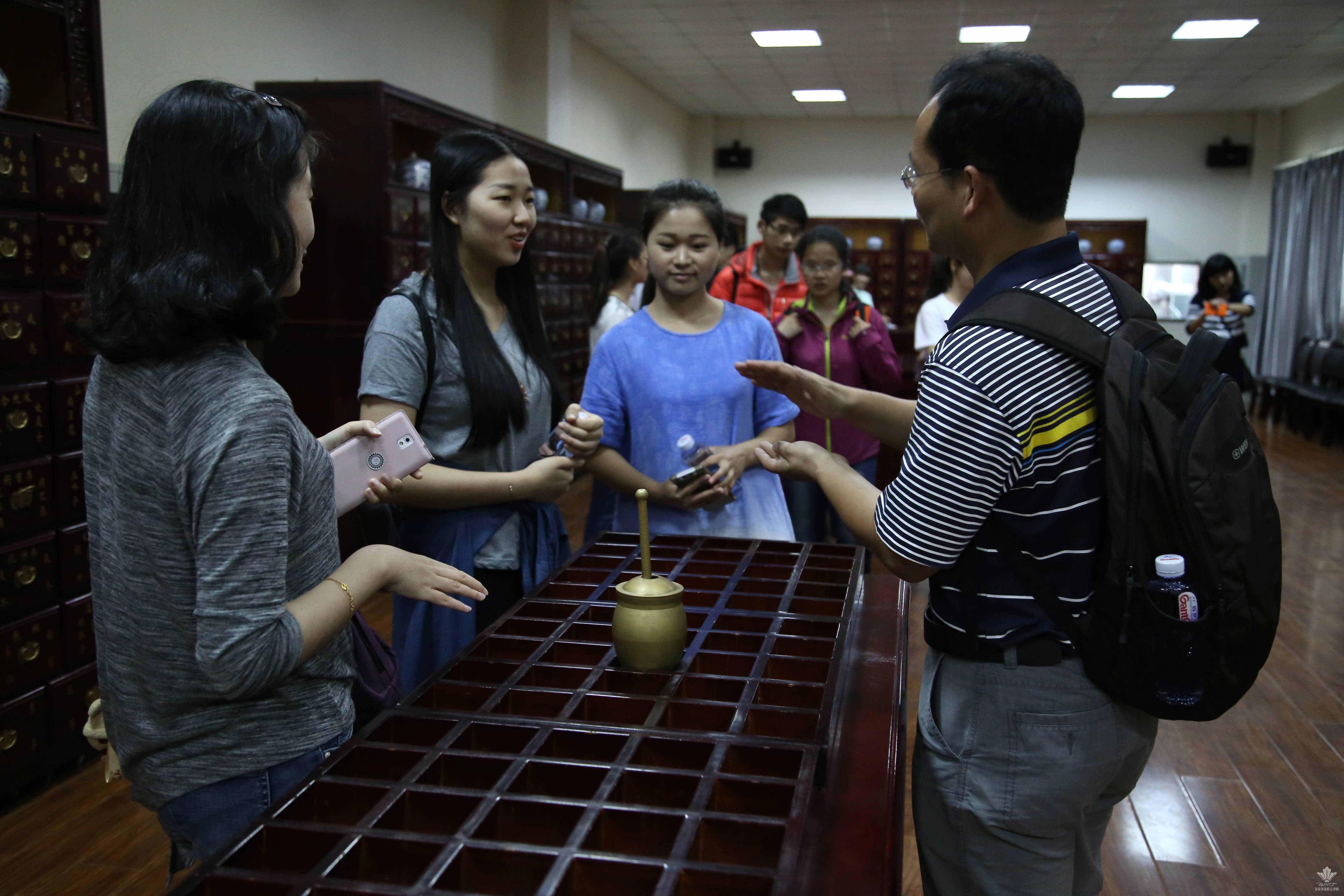学习。参观团在观看了我院的宣传片后参观了学院的医学美容实验实训中心,中医美容博物馆,深入了解和感受我院特色专业,体验学院传统中医药与现代美容相结合的创新成果。参观过程中,同学们热情高涨、对于医学美容实训室的先进仪器设备充满好奇,在讲解员的耐心讲解下纷纷前去体验,现场气氛热烈。