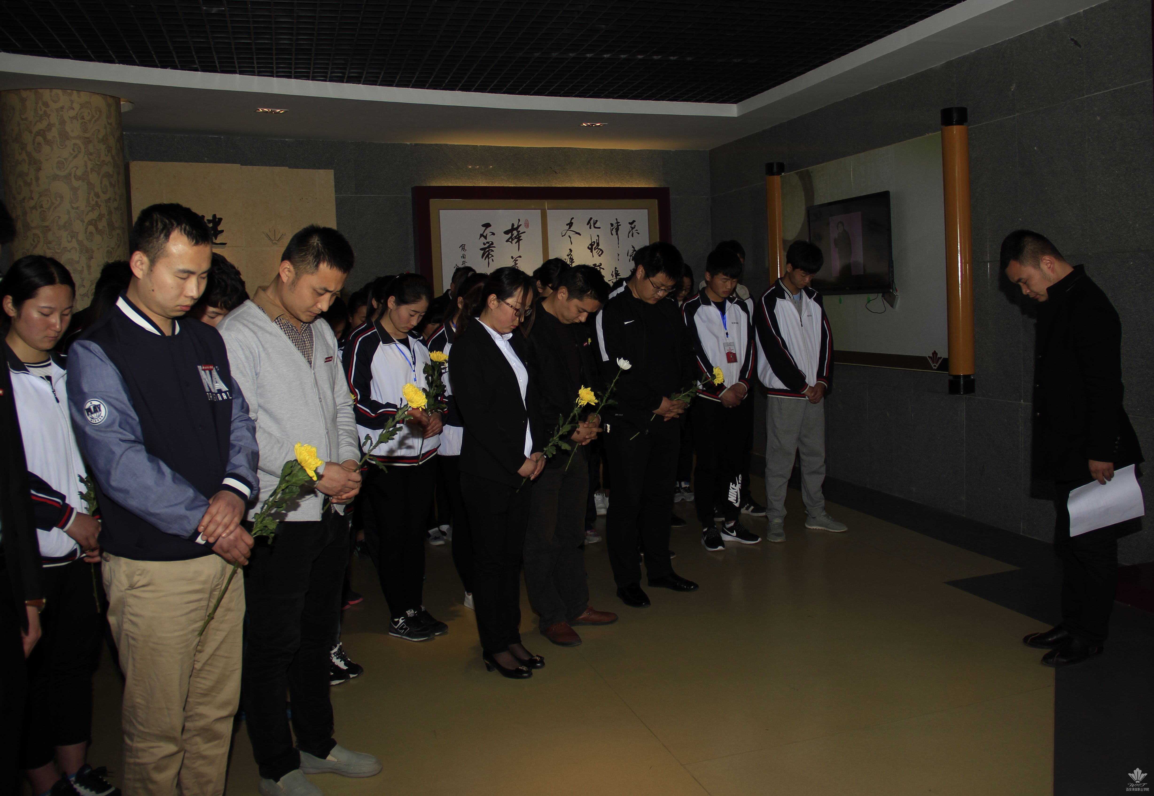 令人肃穆的纪念馆内菊花、百合等鲜花飘散着淡淡的花香。在哀婉的乐声中,前来吊唁的师生面对老院长的铜像集体鞠躬、默哀、献花。他们参观了纪念馆,瞻仰了老院长的蜡像,了解了老院长生前的辉煌事迹。