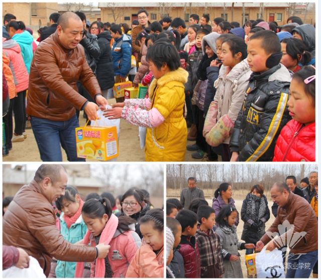 2015年12月4日,王卓董事长带领集团部分教职员工及其子女,前往海棠集团定点援助学校——陕西蒲城县洛滨镇西头初级中学,在严冬来临之前,给孩子们带来190件量身定做的御寒棉衣和书包、玩具等礼物,为学校的老师送去37套保暖内衣。