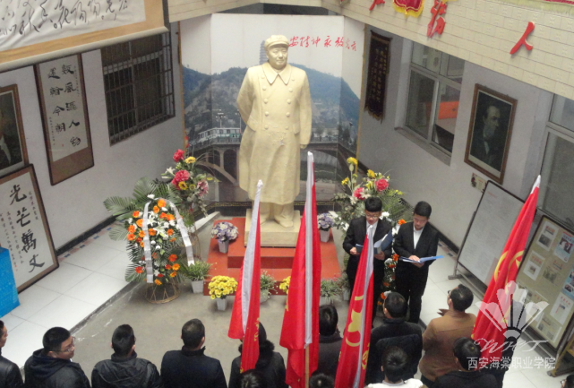 活动中,党委书记张桂荣代表学院向伟大领袖毛泽东的雕像敬献了花篮,带领参加活动的所有人员默哀3分钟,并瞻仰了毛泽东雕像,深切缅怀老一辈革命家的丰功伟绩。王兴权处长代表我院向纪念馆的同志赠送了纪念品。院团委书记石博宣读了《弘扬革命精神•传递正能量》的倡议书,提出要自觉培育和践行社会主义核心价值观,同时要崇尚科学、刻苦学习,努力提升自身素质,知荣耻、明法纪、守诚信、礼谦让,争做一名有素质有修养有内涵的当代大学生。