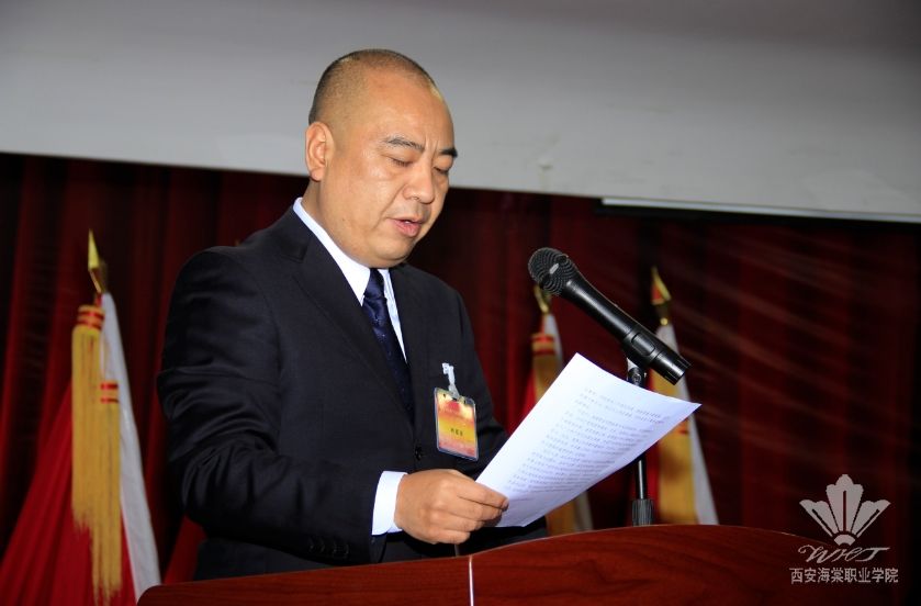 董事长王卓向大会致词。他指出,本次党代会是在全党、全国人民深入学习贯彻十八大和十八届三中、四中、五中全会精神,在我国进入全面建成小康社会的决定性阶段,在高等职业教育事业持续、稳定、健康发展的新形势下召开的,也是在我院改革发展进入继往开来、迅速提升办学层次、全力创建本科院校、开创工作新局面的关键时期召开的。希望全体代表认真履行职责,同心协力、发扬民主,努力把这次会议开成一个团结、民主、鼓劲、奋进的大会。