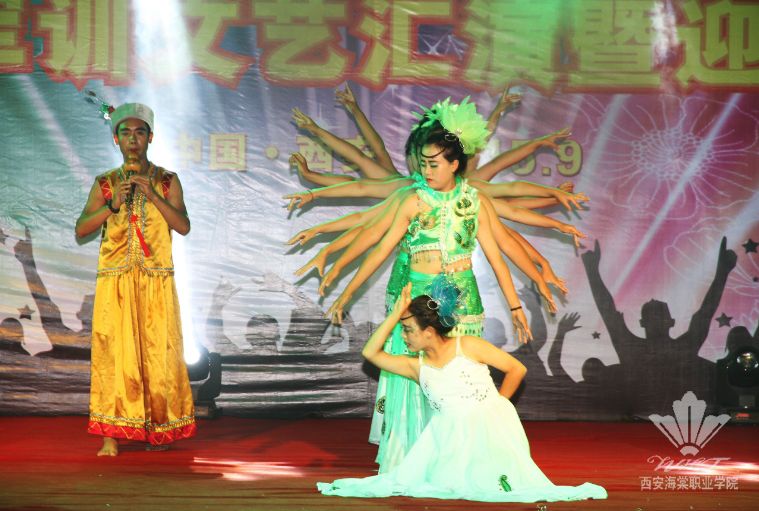 此次文艺汇演节目形式丰富多样,以舞蹈为主,兼有情景剧、小品、歌唱、打击乐等。一段充满激情和活力的开场舞——《水鼓》表演,瞬点引爆了全场观众的热情。紧接着,气势磅礴、浑厚雄壮的《安塞腰鼓》,充满民族风情的《竹林深处》《欢乐地跳吧》《七月火把节》,青春活力的啦啦操,劲爆动感的街舞,风格多变的歌曲串烧等精彩纷呈的节目接连上演,向现场观众展现了海棠新生的多才多艺。