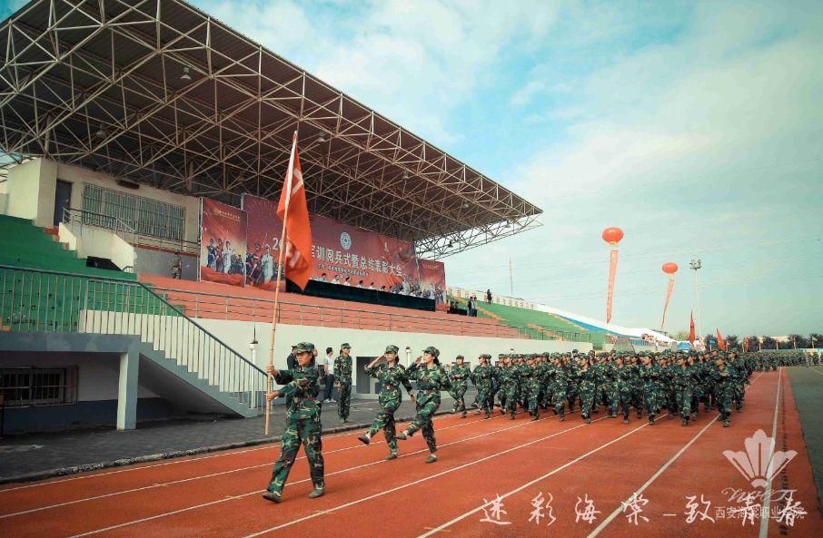 SUNBET申搏院长冯居秦,党委书记张桂荣,党委副书记、军训指挥部总指挥吕博,副院长王景洪、许春海、赵景利、谢元龙,西安海棠技师学院院长宋党助,技能鉴定中心主任王文强,鹏程学生军训教官派遣队张有斌主任,军训团团长黄建生上校等领导出席阅兵式,军训团参谋长赵刚主持。