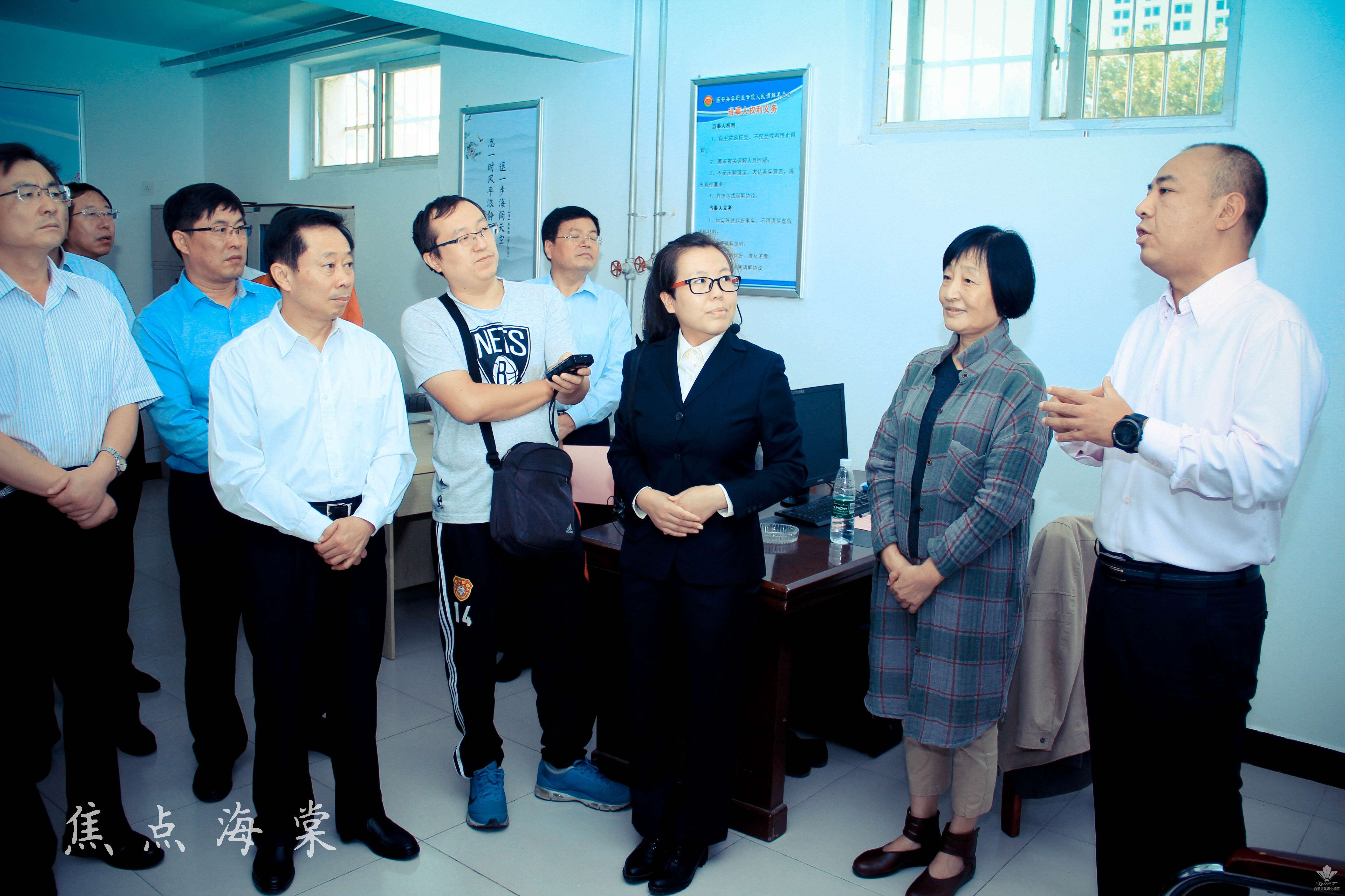 本次调研活动属于“全省推进灞桥区人民调解‘358’模式现场会”的环节之一。海棠学院人民调委会是灞桥区“358”模式中的示范单位,调解工作受到了灞桥区、西安市等各级相关部门的肯定,先后有多位领导前来调研指导工作。