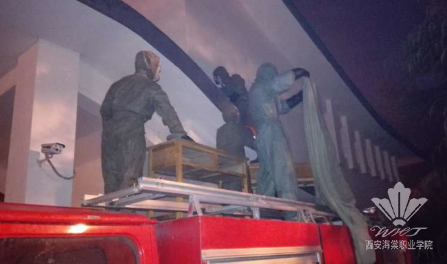 为了尽快清除师生身边的这颗“定时炸弹”,学院理事长、省军区预备役高射炮兵师防化营副营长王卓带领保卫处和预备役分队的同志们制定了详细的剿灭方案。为了保护广大师生不受意外伤害,同时一举歼灭所有胡蜂,他们决定利用雨夜,在学院消防车和专业防护服的保护下,对其进行剿灭。