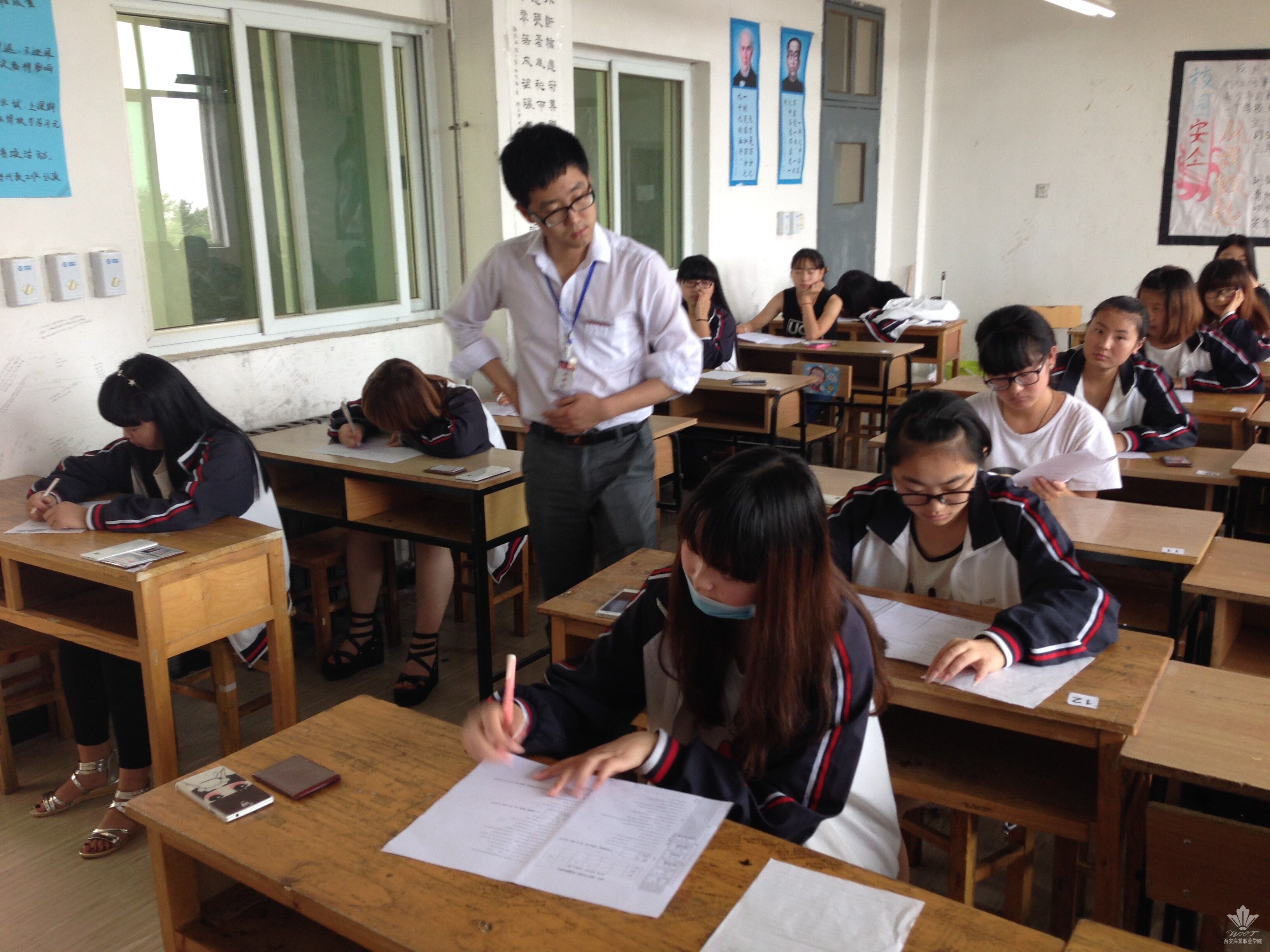 本次期末考试工作涉及分布在2号教学楼和3号教学楼的115个考场。为了保障考务工作的顺利进行,学院首先成立了以副院长程宇为组长,教务处处长杨英、教务处副处长崔晓娟、中医美容学院院长李锋利、医学技术学院副院长张政、经济管理学院副院长赵刚刚为成员的考试工作领导小组,统筹安排各项考务事宜。同时设定两个考务工作小组,分别负责考务安排、考场布置、收发试卷、楼层巡视等工作。