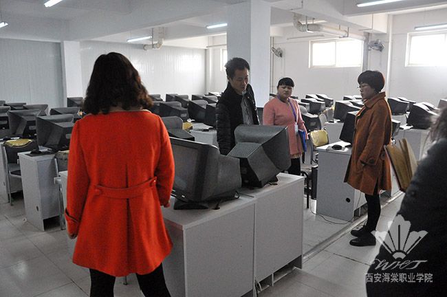 在综合教学楼时,正值工作人员对机房进行设备维护和软件更新工作,学院领导重点了解和查看了各机房的使用状况。