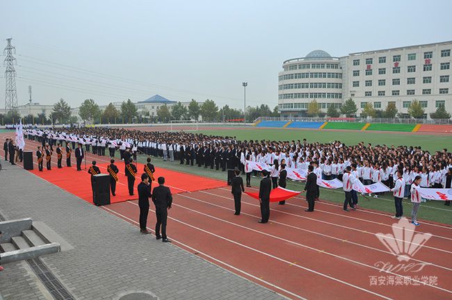 活动在激昂的国歌声中拉开帷幕,党委副书记王爱民向中医美容学院院长李锋利授旗,随后,中美院全体学生在学生干部的领誓下,面向班旗宣誓,同学们表情凝重,语气坚定,洪亮的声音在足球场上空久久回荡。