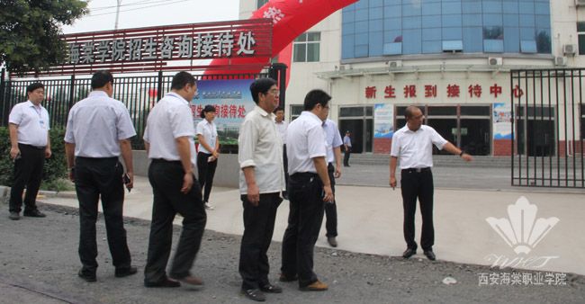 8月17日上午,海棠学院理事长王卓在职业学院院长冯居秦、理事会秘书长何建华、学院党委副书记王爱民、副院长吕博、技师学院院长宋党助、宣传处处长郭峰、招办主任王智锦等陪同下深入招生接待第一线,视察了2014级新生接待准备工作。