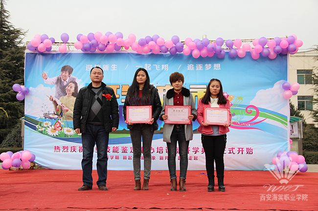 3月4日下午,西安海棠职业技能鉴定中心广场上人头攒动,欢快的音乐响彻全场,技能鉴定中心在这里隆重举行了2014学年开学典礼。职院学生处处长夏亚兵、团委副书记石博、医学院院长韦满余、中医美容学院院长邢军,技能鉴定中心主任王文强、副主任周翠琴、林军等出席开学典礼,来自技能鉴定中心的优秀学员代表,医学院、中医美容学院12、13级学生代表参加了此次活动。