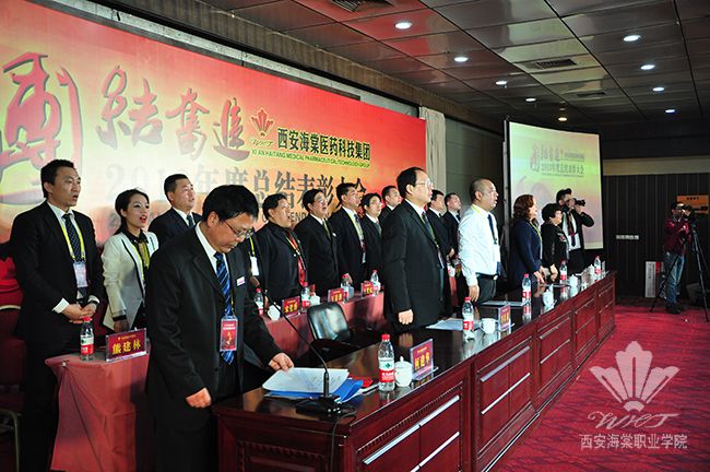 大会在庄严的国歌声中正式开幕,王卓董事长向大会做了以《整合资源 凝聚力量 团结一致 共谋发展 为推动海棠集团快速发展而努力奋斗》为主题的西安海棠医药科技集团2013年度工作报告,王卓董事长在报告中回顾了2013年在集团董事会的正确领导下,在下属各单位领导的积极参与、共同努力下,集团上下以“整合资源、凝聚力量、特色发展”的战略思想为指导,以“校企合作、共同研发”为契机,紧紧围绕“中医美容产业”发展主线,深化教学改革、狠抓招生就业、加大产品研发、创新销售模式、拓展市场份额、夯实基础管理,集团各项工作取得了辉煌成绩。王卓董事长在报告中着重强调了集团在2013年加强思想教育工作,促进企业和谐发展、大力改革创新,推动企业快速发展、完善机构制度,夯实企业基础管理、加强重点项目建设,优化办学条件等方面所取得成绩,同时对2013年度集团整体在工作中的不足进行分析。