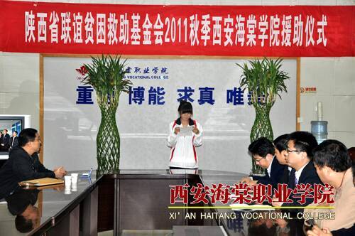 陕西省联谊贫困基金会2011秋季贫困助学活动在西安海棠学院举行