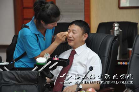 西安海棠学院医美专业学生为参加歌咏比赛的教育厅领导化妆侧记