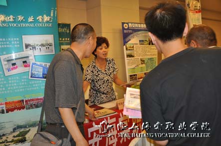 在咨询大厅,近二十家高校的咨询点沿大厅四周摆开,络绎不绝的考生及家长在一张张桌前认真咨询。海棠职业学院的咨询桌前,赵部长和几位老师笑容可掬地向考生家长发放资料。一对母子坐在桌前向赵部长咨问医学院情况,当听孩子母亲说想让孩子报考眼视光专业,可担心孩子视力不好时,赵部长仔细询问了孩子的视力后明确表态,孩子的视力上这个专业没问题。孩子的母亲说她的孩子从小爱好医学,他们全家想让孩子报考眼科专业,他们最担心的是孩子的视力过不了关。孩子现在能上喜欢的专业了,现在他们全家悬着的心终于放下了。针对孩子以后深造途径问题,赵部长将我院与兄弟院校联合办学的情况给他们作了详细介绍。母子俩给赵部长留下电话号码后高兴地说,他们早就听说过海棠学院了,不但学办的好,而且对咱考生及家长也亲热,他们希望孩子能到海棠学院学习。