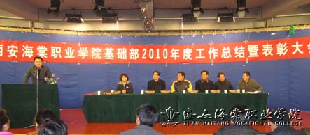 张扶安主任在总结报告中就2010年基础部的工作进行了一一汇报,包括如何加强思想政治工作,努力建设精干团结的领导班子,完善管理制度,规范教学档案和教学资料,加强教学督导、狠抓教学环节,并总结了工作中取得的成绩和存在的不足,指出成绩的取得离不开王总的英明决策,离不开院领导的悉心关怀,离不开基础部全体教师的辛勤耕耘。最后,展望未来,制定2011年工作计划,希望新的一年基础部能够为海棠学院事业的发展做出贡献。