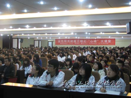 2011年3月1日下午,陕西省心理健康中心心理咨询师田景秀老师被邀在我院学术报告厅举行了第一场“金色阳光健康工程之‘心晴’大课堂”讲座,讲座得到了我院师生的一致好评。