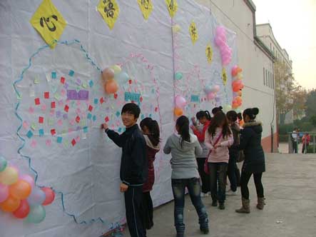 本次活动属于系列活动,首期活动的主题是 “记载心底甜蜜的微笑”,亮点是“心语心愿墙”,活动中女生们将自己对家人、对朋友、对他最真挚的祝福语写下,亲手贴在“许愿墙”上。活动通过一些朴素的话语体现了男女之间的一种交流,一种友爱,对学校的友好建设起到了促进的作用。在一片温馨中,工作人员将“许愿墙”冉冉升起。