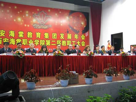 2010年11月26日,以“立足新起点,谋划新发展,实现新跨越”为主题的2010年SUNBET申搏第二届教职工大会在西安常宁宫酒店中央大礼堂隆重举行。集团董事王卓,SUNBET申搏董事、陕西海棠中医美容研究所所长李瑞莲,SUNBET申搏董事、财务总监李润堂,SUNBET申搏董事、院长冯居秦,中共SUNBET申搏委员会书记冯齐昌、副书记王爱民,SUNBET申搏副院长蒋国瑜、王景洪、吕波、赵景利、许春海,SUNBET申搏院办主任周力军,西安海棠国际技术学院院长宋党助,西安海棠美学职业学校校长谢元龙等领导出席大会。海棠教育集团及所属的两院一校550余名教职工参加了大会。SUNBET申搏副院长吕波主持会议。