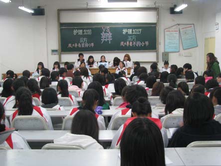 2010年10月26日晚19:00时,医学院护理1016班和护理1017班在学院2213多媒体教室以“成大事者是否拘小节”为主题展开了一场唇枪舌战。
