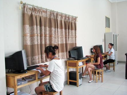 2010年7月20日上午10:00,我院参加大学生暑期实践活动负责电话信息回访的大学生志愿者,在我院二号教学楼指定教室开展“话务”工作。他们每天工作8小时,早上8:00开始上班,8:30分会进行一次简单的晨会,主要目的是安排当天工作并与省上各招生咨询点的老师及时进行工作对接。