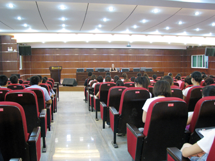 2010年7月19日,海棠集团销售部经理鹿程在学院学术报告厅对暑期新生接待工作做了专题培训和指导。出席本次会议的领导有副院长、大学生暑期实践组组长吕博,招办主任王智锦,各暑期工作组负责人及所有工作人员参加了本次培训。