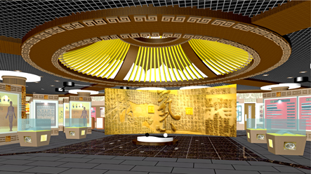 博物馆整体设计风格古香古色,厚重大气。走进博物馆,首先映入眼帘的是中国思想史和古文专家、陕西省教育厅方光华副厅长撰写的《中国中医美容博物馆赋》,赋文功底深厚,文辞典丽,旁征博引,寓意深远。赋的两侧有王昭君与杨贵妃的塑像,容貌娇艳,神态妩媚,她们是古代女性美的象征。展厅中央以中国传统养生文化最具核心内容的“精”“气”“神”为主题展开,蕴含了中国古代“天人合一”的自然哲学思想,体现了祖国古代医学美容、养生、保健的精华所在。一尊西汉大克鼎矗立在穹顶下方,与博物馆厚重的历史氛围浑然一体。