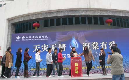 赈灾献爱心募捐活动中,学院董事会成员、院领导、教育集团、中层干部、二级学院领导等广大教职员工和学生都纷纷慷慨解囊,踊跃捐款。王卓总经理以个人的名义率先向灾区捐款一万元。赈灾献爱心活动中,全院师生最终募得包括现金、实物等总价值共计8万余元。