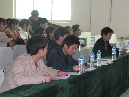 马敬涛主任致开幕词,他首先对大会的召开表示热烈的祝贺。其次,他总结了学院各级团组织在学院党委领导下所做出的贡献,并对学生提出要求:要积极深入学习贯彻党的十七届四中全会精神,按照胡锦涛总书记对青年提出的“勤于学习,善于创造,敢于奉献”的要求,用邓小平理论和“三个代表”重要思想构筑强大的精神支柱,牢固树立和落实科学发展观,大力弘扬社会主义荣辱观,坚定理想信念,刻苦学习科学文化知识,积极投身社会实践,不断提高自身素质,努力成为中国的特色社会主义事业的合格建设者和可靠接班人,为推动科学发展,促进校园和谐稳定贡献青春、智慧和力量。