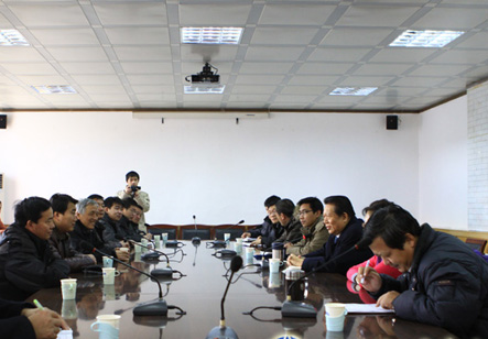 参观完后,丁祖诒院长在会议室热情会见了我院蒋国瑜副院长一行二十余人,并与我院参观组成员进行了简单座谈。我院蒋国瑜副院长简单的介绍了我院的发展状况,并表示此次参观感触颇深,我们一定要以西译为榜样,学习效仿西诒的先进思想,与西译共同进步。