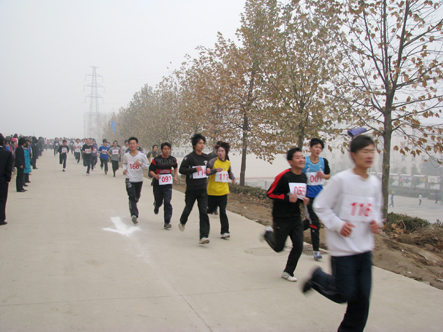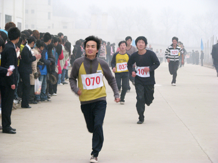 比赛开始,工作人员迅速就位,参赛者满怀激情的开始了5000米征程。我们相信每个参赛者的内心此次此刻都充满了坚持到底的信念和力量,他们不畏严寒,不畏疲倦,不畏困难,因为他们具有一颗年轻火热的心。比赛场上,队员们奔跑着,跑道两边的拉拉队为他们呐喊助威,服务队和保卫队也随时准备着为参赛者服务。最后,在所有工作人员和参赛者的共同努力下,我院第五届“一二九”越野赛取得了圆满成功。