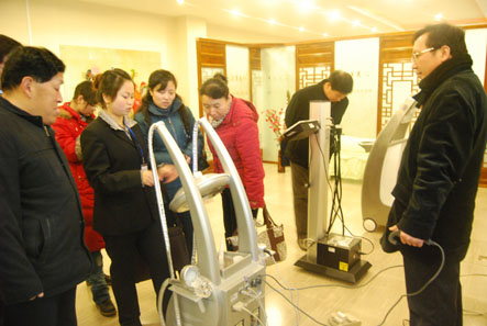 我院副院长王景洪、教务处处长杨国峰陪同上级领导参观了康复治疗实训中心、西医诊断实验室、中药实验室、人体生命科学展览馆、中医美容实训基地、人体健康检测中心等基础实验室。参观过程中,年检专家成红青还亲自体验了中医美容实训基地中的急速修身肌肤仪,对自己的身体素质进行了测评。